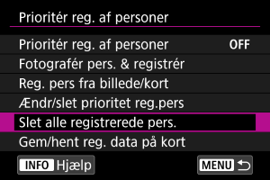 : Nulstil kamera], slette alle oplysninger om de registrerede personer også.