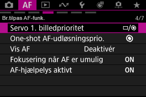 : AF-hjælpelys aktivt] Brugerdefineret funktion er indstillet til [Deaktivér].