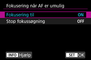 Du kan specificere den objektivbetjening, der skal gælde, når autofokus på et motiv ikke er muligt.