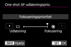Du kan angive, om du vil prioritere fokus eller udløsertiming for One-Shot AF (undtagen ved optagelse med touch udløser).