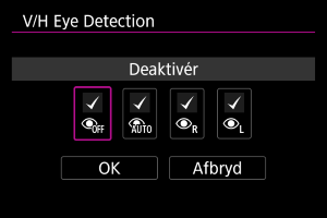 : V/H Eye Detection] angiver, at standardindstillingen er ændret.