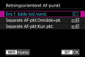 Du kan indstille separate typer AF-områder eller et andre positioner for AF-punkter til lodret og vandret optagelse.
