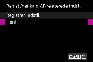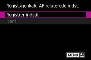 Registrer/genkald AF-relaterede indstillinger