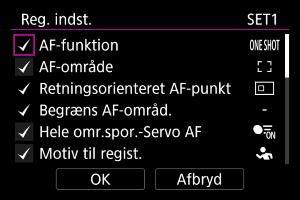 Vælg de AF-indstillinger, der skal registreres.