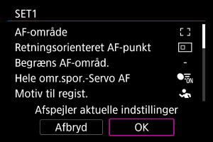 ]. Vælg [OK] for at registrere indstillingen. Du kan finde flere oplysninger om AF-områder under AF-område.
