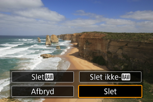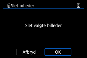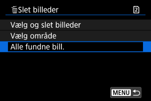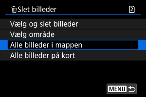 : Slet billeder], bliver alle billeder i mappen eller på kortet slettet.