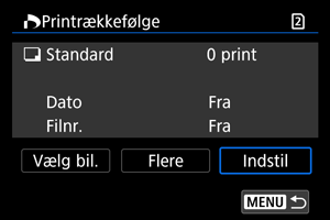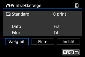 - RAW/HEIF-billeder og film kan ikke angives til printing. Bemærk, at RAW/HEIF-billeder og film ikke angives til printing, selv hvis du angiver alle billederne med [Flere].