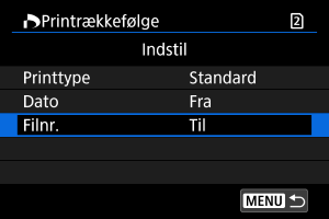 - Med [Indeks]-print kan [Dato] og [Filnr.] ikke begge være indstillet til [Til] samtidigt.