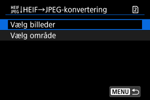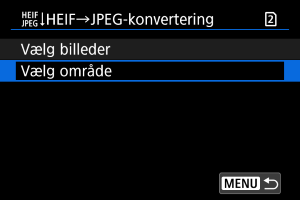 for at vælge et HEIF-billede, der skal konverteres til JPEG, og tryk derefter på