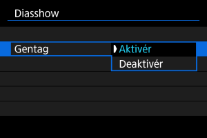 - Angiv indstillingerne [Afspilningstid] og [Gentag] (gentagen afspilning) for stillbillederne.