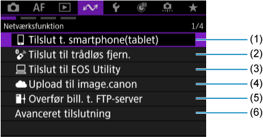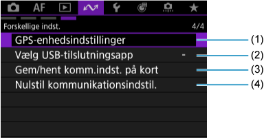 - Nogle menupunkter kan ikke konfigureres, når kameraet er forbundet til en computer eller andre enheder via et interfacekabel.