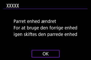 - Der vises en meddelelse, hvis kameraet allerede er parret med en anden enhed. Vælg [OK] for at afslutte den aktuelle Bluetooth-forbindelse.