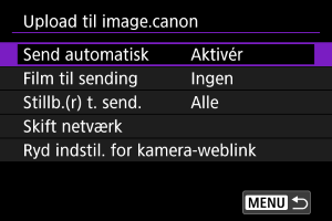 - [Når kameraet tændes]: Automatisk afsendelse starter, når kameraet tændes.
