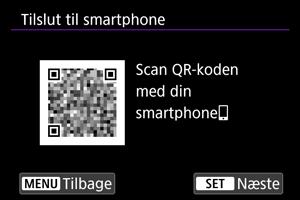 - Hvis Camera Connect ikke er installeret, skal du bruge en smartphone til at scanne QR-koden på skærmen for at få adgang til Google Play eller App Store for at installere Camera Connect og derefter trykke på