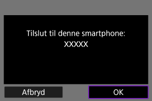 - Visning af ovenstående skærm på kameraet indikerer, at der er etableret en forbindelse.