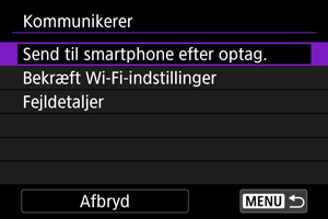 Følgende handlinger er tilgængelige fra skærmen [Kommunikerer].