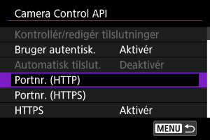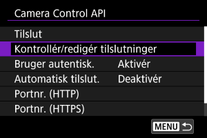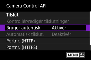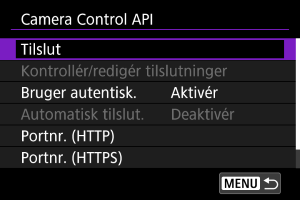 Brug af Camera Control API (CCAPI)