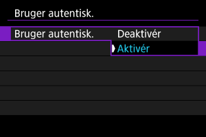 Vælg [Bruger autentisk.].