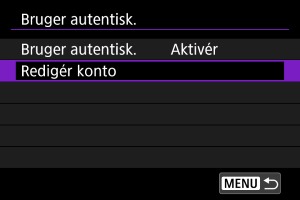 - Hvis du har valgt [Aktivér], skal du indtaste [Brugernavn] og [Password] i [Redigér konto].