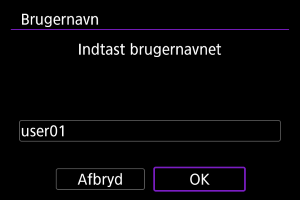 - Indtast kameranavnet, når kameraet viser [Registrér et kaldenavn til identificering af kameraet. Dette kaldenavn vil blive anvendt til Wi-Fi- og Bluetooth-tilslutninger.].