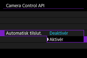 Hvis du vælger [Aktivér], oprettes der automatisk en forbindelse, næste gang kameraet starter, efter du har slukket det.