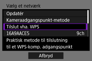 Vælg [Tilslut vha. WPS] på skærmen [Vælg et netværk].