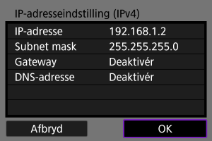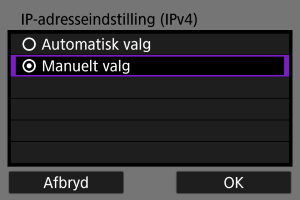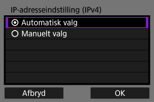 - Hvis skærmen [IP-adresseindstilling (IPv4)] vises, skal du gå til Indstilling af IP-adressen.