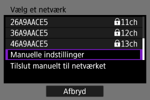 Vælg [Manuelle indstillinger] på skærmen [Vælg et netværk].