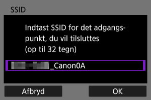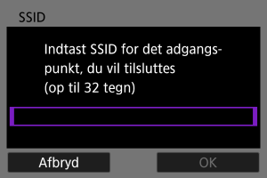 Tilslut til et adgangspunkt ved at angive dets SSID (eller ESS-ID).