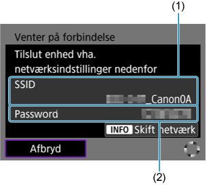 - I andre enheders Wi-Fi-indstillinger, skal du vælge det SSID (netværksnavn), der vises på kameraskærmen, og derefter angive password.