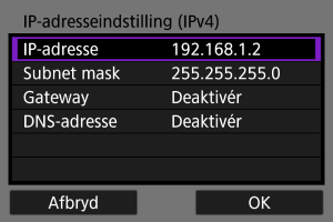 Manuel indstilling af IP-adressen