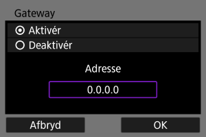 Hvis du vil bruge en gateway, skal du vælge [Aktivér] og derefter vælge [Adresse].