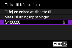 Tilslutningsindstillinger for enheder, som du har tilsluttet via Wi-Fi eller Bluetooth, bevares på skærmen. Du kan bruge disse indstillinger til at oprette forbindelse til den samme enhed igen.