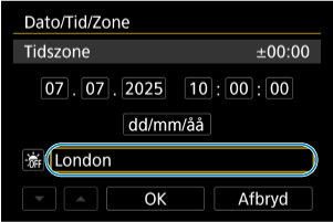 Ved at indstille tidszonen først kan du efterfølgende blot justere denne indstilling efter behov, og så opdateres dato/tid for at matche den.