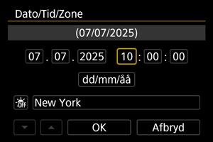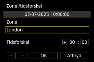 - Efter ændring af [Zone-/tidsforskel] skal du kontrollere, at den korrekte dato/tid er indstillet.