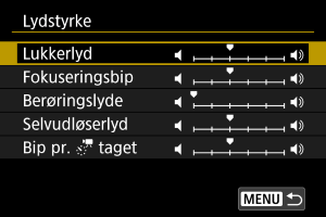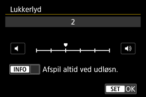 • Kameraet bipper altid, uanset indstillingerne for [Optagelse: Lukkermetode], med [Afspil altid ved udløsn.] valgt i indstillingerne for [Lukkerlyd].
