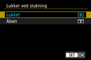 Du kan indstille, om du vil lade lukkeren være åben eller lukke den, når kameraets afbryder indstilles til Sluk.