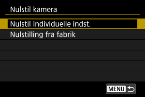 1. Vælg [Indstilling: Nulstil kamera] ().
