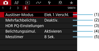 Registerkartenmenüs: Fotoaufnahmen (Livebild-Aufnahme)
