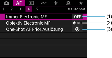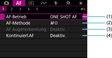 Registerkartenmenüs: AF-Registerkarte (Livebild-Aufnahme)