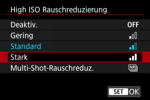 - Die aktuelle Einstellung ist blau gekennzeichnet.