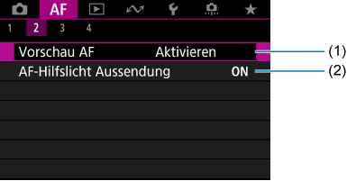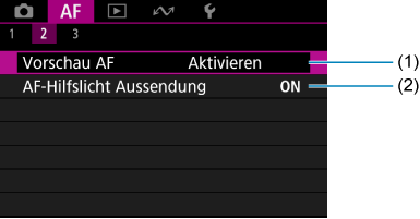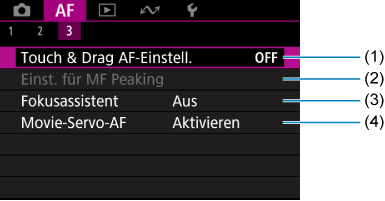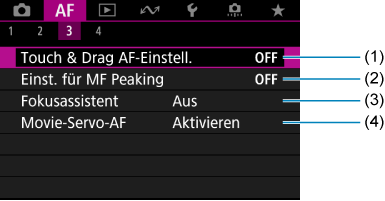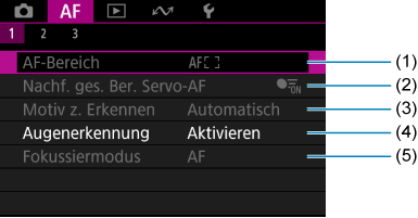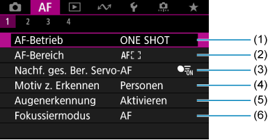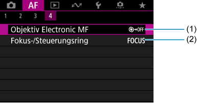 - Wenn Objektive ohne Fokussierschalter verwendet werden, wird [Fokussiermodus] auf der Registerkarte [