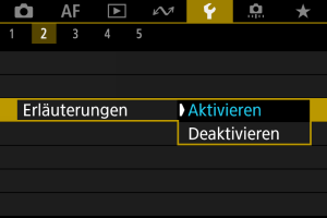 Eine kurze Beschreibung der Funktionen und Elemente kann über die Schnelleinstellung angezeigt werden.