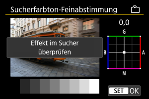 , um den Farbton des Suchers anhand des Graubildes einzustellen, und drücken Sie dann die Taste