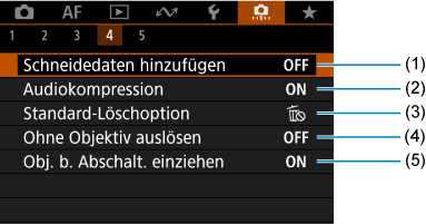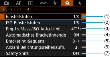 Registerkartenmenüs: Individualfunktionen