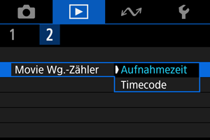 - Unabhängig von der [Movie Aufn-Zähler]-Einstellung werden immer Timecodes zu Movie-Dateien hinzugefügt.