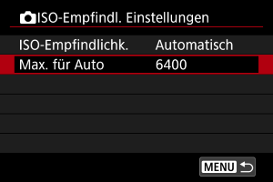 Für ISO [AUTO] können Sie die maximale ISO-Empfindlichkeit einstellen.