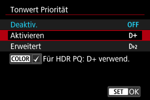 : Tonwert Priorität] wird auf [Deaktiv.] gesetzt, wenn [