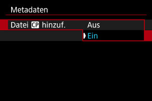 Benutzerdefinierte Bilddateien können in Movie-Dateien eingebettet werden, indem Sie [Datei hinzuf.] auf [Ein] einstellen, wenn [