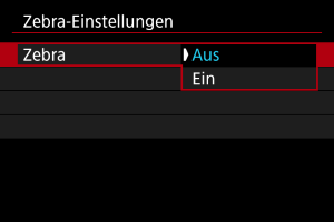 - Es wird empfohlen, die Zebra-Anzeige im Voraus zu überprüfen, wenn Sie [Zebra-Muster] einstellen.